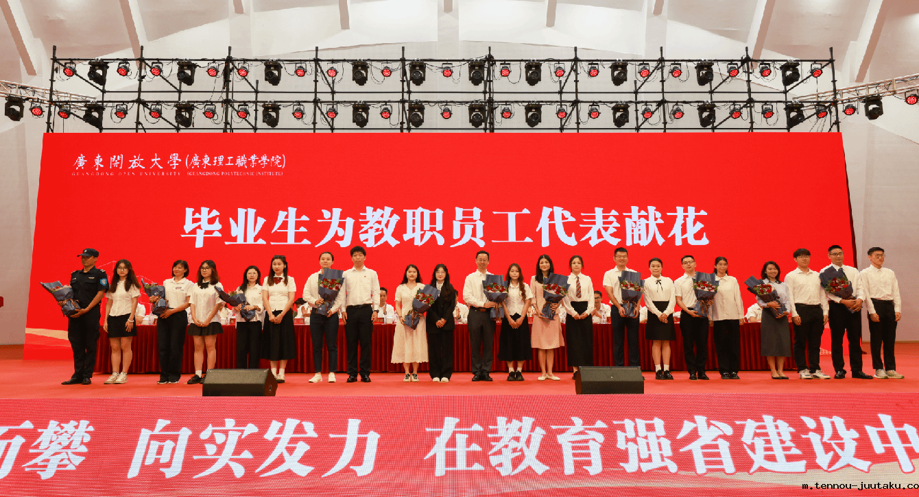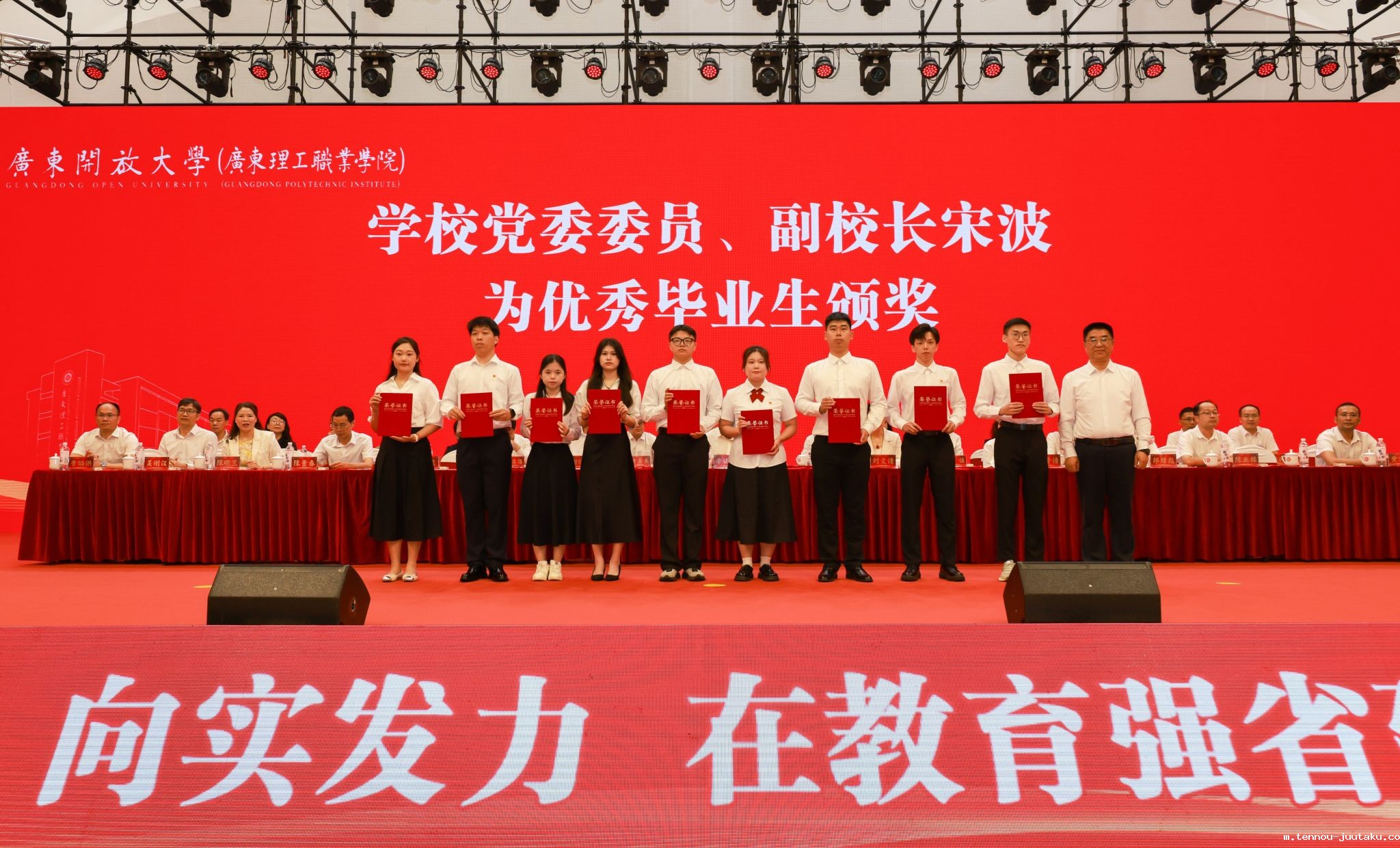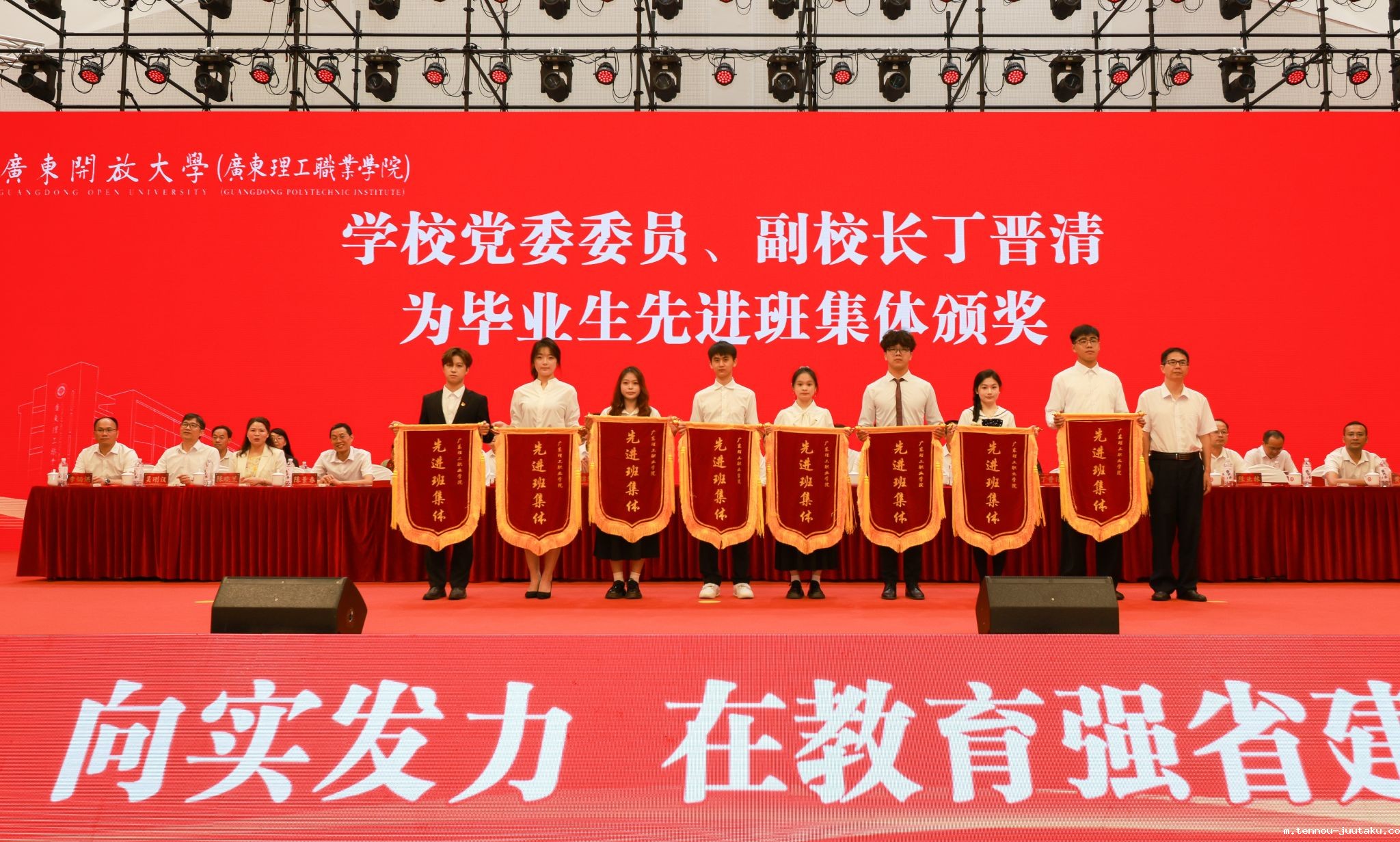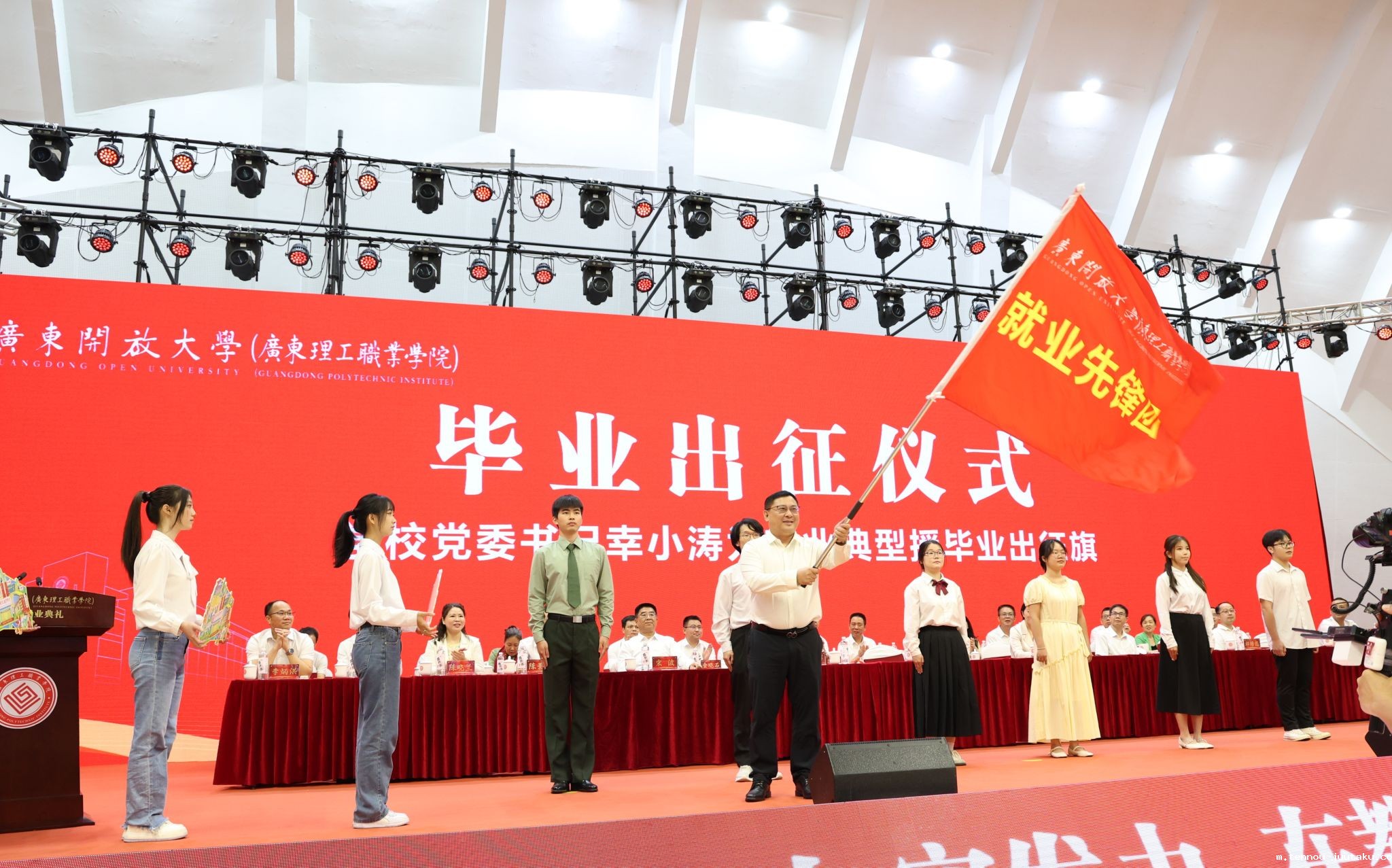 幸小涛为6名就业典型代表授“广东开放大学(jy九游会)就业先锋团”旗帜并赠送毕业纪念品。学校坚持深化职业教育、高等教育、继续教育融通一体化发展,高职办学近年来实现跨越式发展,2025届毕业生共6800多人。他们或戎装启程、逐梦军营,或扎根农村、助力乡村全面振兴,或钻进企业工厂车间搞技术钻研、矢志成为大国工匠,或升学深造、进一步丰富知识体系储备,或到西部和艰苦地区就业、在广阔天地书写火热青春,或自主创业、为社会创造更多就业岗位……幸小涛指出,毕业生们奔涌在各行各业、深受社会各界欢迎,充分体现了学校落实立德树人根本任务、深化“职继普”融通一体化人才培养的丰硕成果,充分展现了新时代青年学子昂扬向上的精神风貌和强国有我的责任担当。幸小涛勉励他们牢记习近平总书记殷切嘱托,坚定理想信念,厚植家国情怀,练就过硬本领,发扬奋斗精神,到祖国和人民最需要的地方发光发热,为中国式现代化建设贡献青春力量。