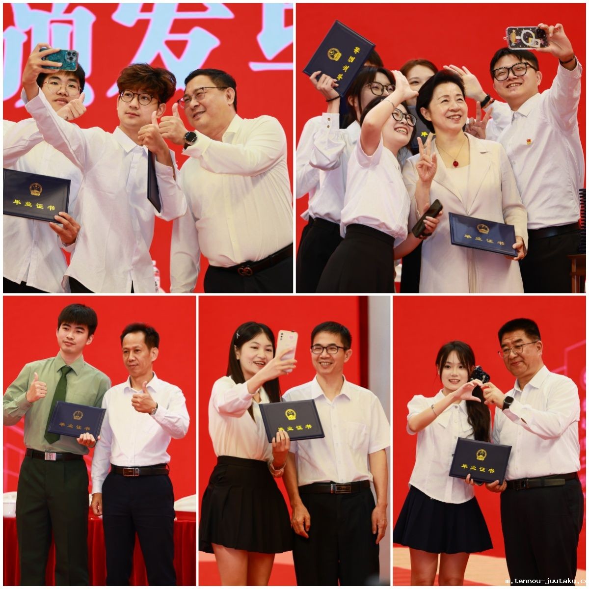 6月28日,以“韶华逐梦,奋斗以成”为主题的学校2025届高职学生毕业典礼在中山校区体育馆举行。学校党委书记幸小涛,党委副书记、校长刘文清,党委副书记谢锦群,党委委员、副校长丁晋清,党委委员、副校长宋波出席典礼。谢锦群主持典礼。同日,南海校区2025届毕业典礼在南海校区举行。