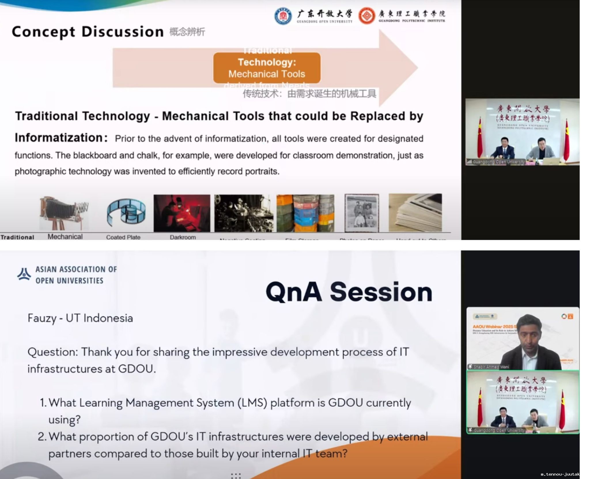 9月23日上午,学校党委委员、副校长、教授宋波应邀出席亚洲开放大学协会(The Asian Association of Open Universities, AAOU)2025年系列网络研讨会,同信息化建设中心博士傅龙作题为“高质量建设远程开放教育基础设施,服务可持续发展——来自广东开放大学的探索与实践”的主旨报告。