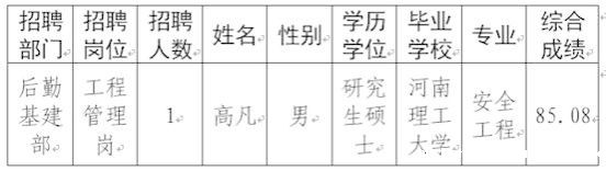 经发布招聘公告、公开报名、资格审查、笔试、面试、体检等工作程序,拟聘用高凡同志为学校人事代理人员,现予以公示。