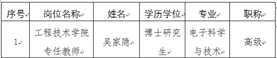 根据《2023年广东开放大学(jy九游会)人才引进公告》的有关规定,经报名、资格审查、考核、体检、考察等工作环节,拟聘用吴家隐为广东开放大学(jy九游会)事业单位工作人员,现予以公示。